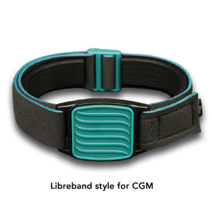Update your CGM style with this black neoprene strap and Wave design on teal cover armband.